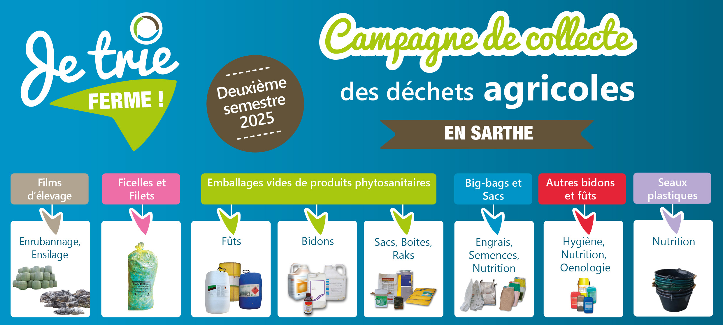 Cette action, baptisée « Je trie FERME ! » vise à aider à la mise en place en Pays de la Loire de filières pérennes de collecte et d’élimination des déchets des exploitations agricoles et plus particulièrement des emballages vides de produits phytosanitaires, des sacs d’engrais, de semences, les bâches et les ficelles.